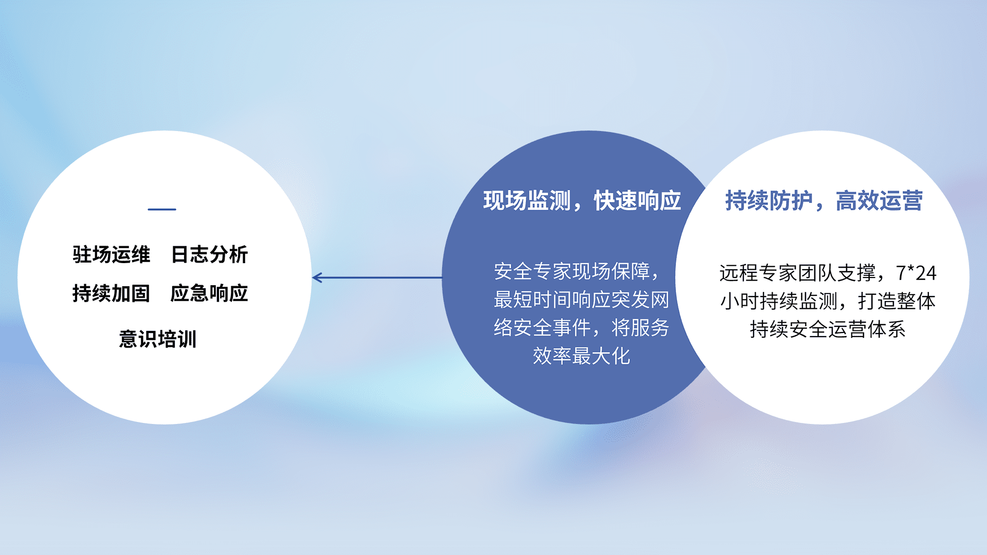 7X24小时持续监测安全事件,保持安全策略有效性,降低资产脆弱性风险,,,,精准拦截黑客攻击,,减少被黑客利用的机会,,第一时间遏制,,降低损失。。。。